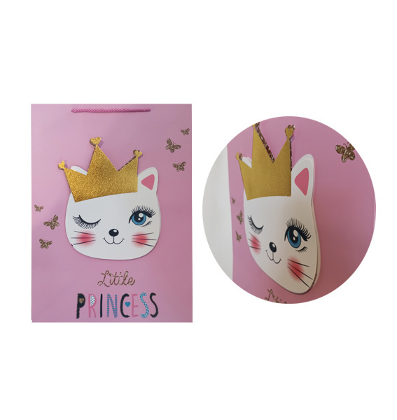 Po jednej stronie torebki główka kotka odstaje tworząc efekt 3D.