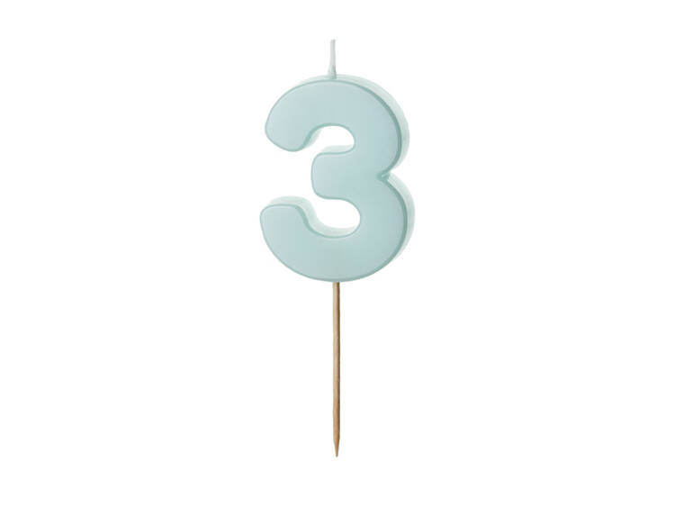 Świeczka urodzinowa w kształcie cyfry 3.
