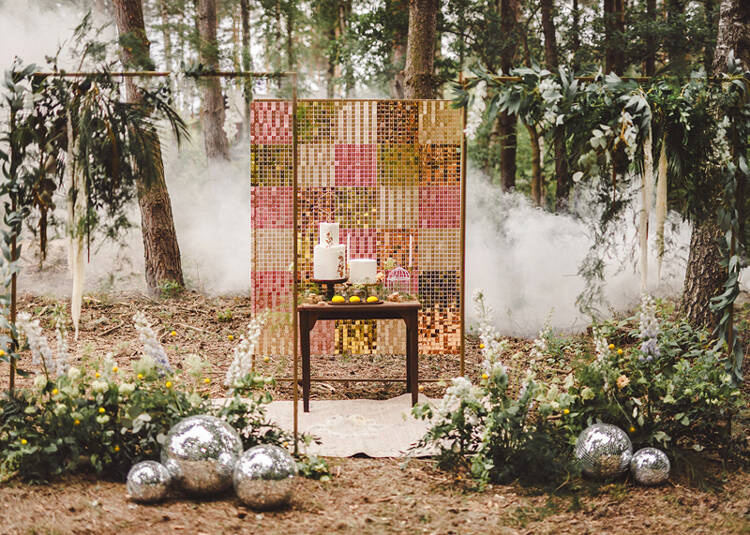 Panel cekinowy, cekiny w kształcie kwadratów, w kolorze miedzianym, wymiar ok. 30x30 cm