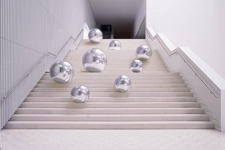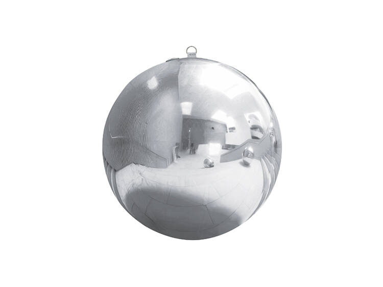 Dmuchana kula, srebrny lustrzany, średnica ok. 90 cm (35''). Do napompowania powietrzem. Zestaw nie zawiera pompki.