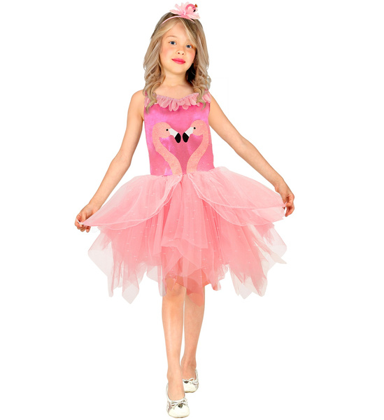 Różowa sukienka na ramiączkach z pięknymi falbankami z tiulu i organzy.