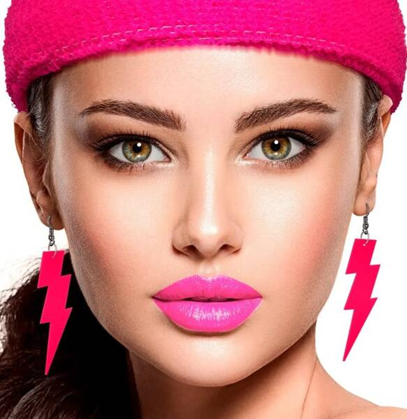Kolczyki Wiszące Błyskawice w Kolorze Rażącego Różu.