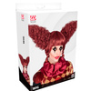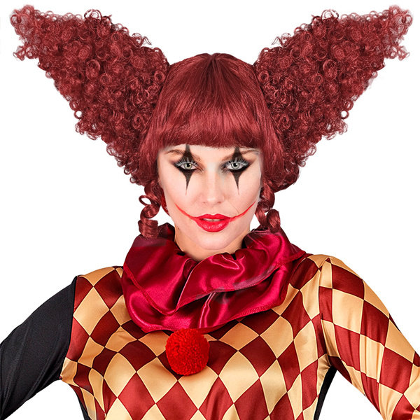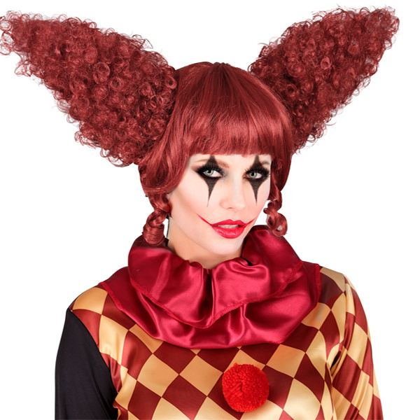 Bordowa peruka z dwoma kitkami w kształcie stożka.