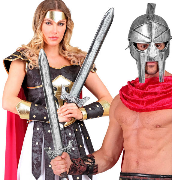 Miecz wykonany z tworzywa sztucznego w kolorze srebrnym.