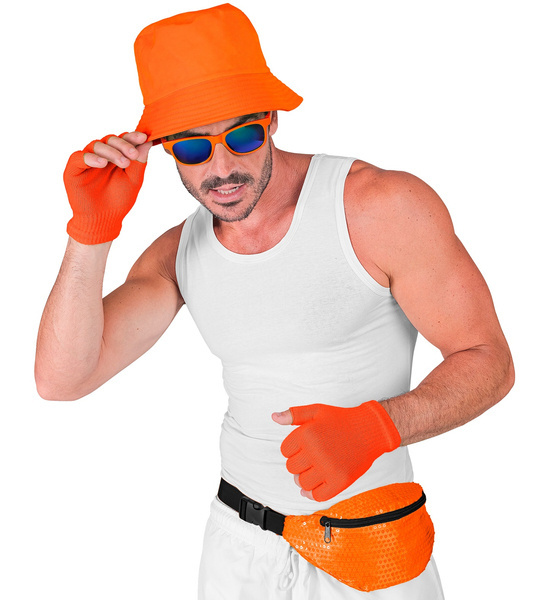 Torebka nerka w neonowym odcieniu zdobiona cekinami.
