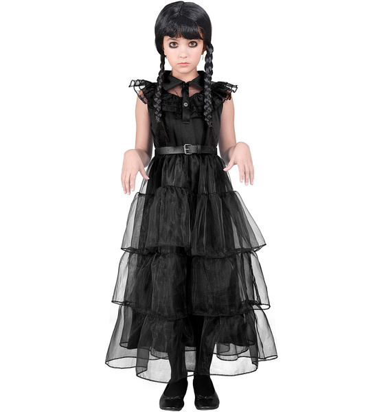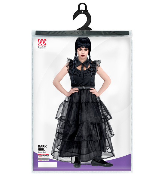 Zestaw zawiera: sukienkę, pasek. Peruka nie wchodzi w skład zestawu. Kolor: czarny. Skład: 100% poliester.