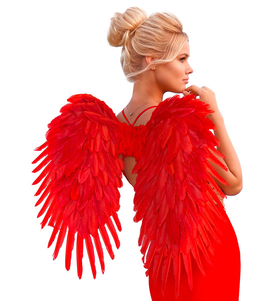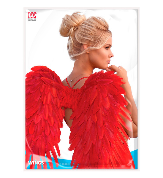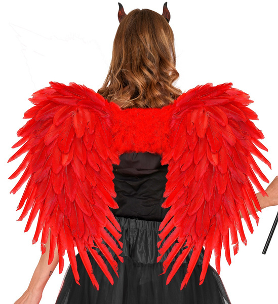 Skrzydła wykonane z piór w kolorze czerwonym.