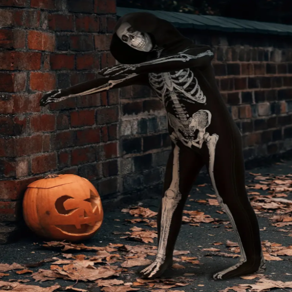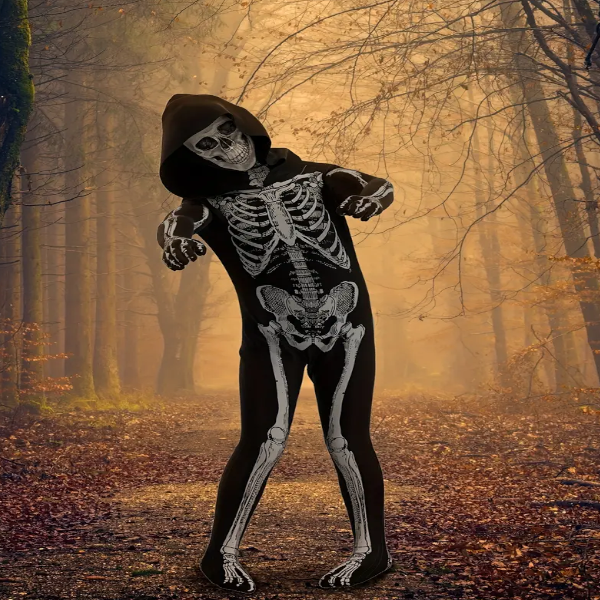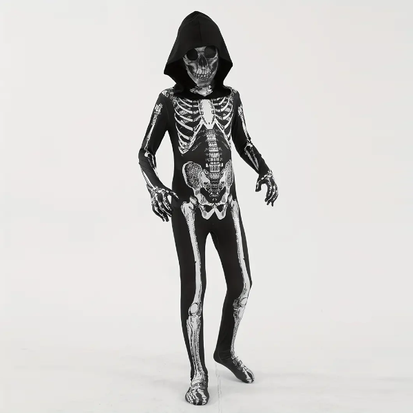 Kombinezon w kolorze czarnym z nadrukiem szkieletu.