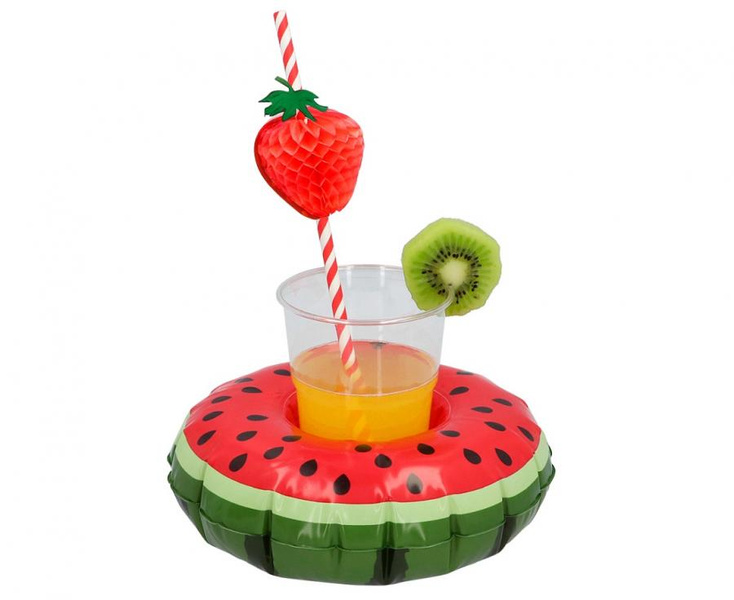Dzięki temu nadmuchiwanemu uchwytowi na kubek z arbuzem (20 cm) każdy może cieszyć się drinkiem w basenie. Ale także podczas przyjęcia w tropikalnym ogrodzie uchwyt na kubek może doskonale służyć jako wesoła podkładka pod drinka, koktajl lub napój bezalkoholowy.