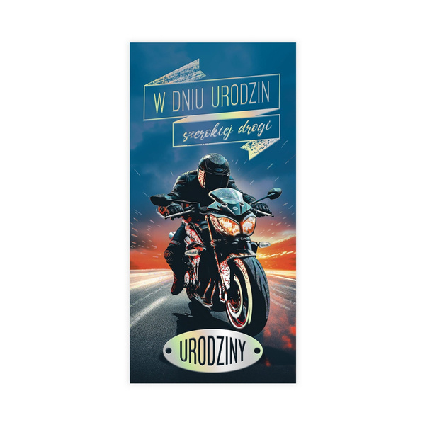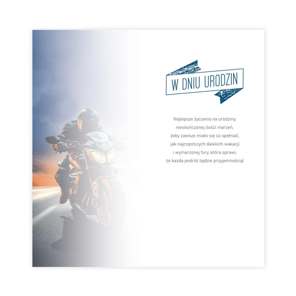 Zdobiona metalicznym napisem, a także nadrukiem motocyklisty.