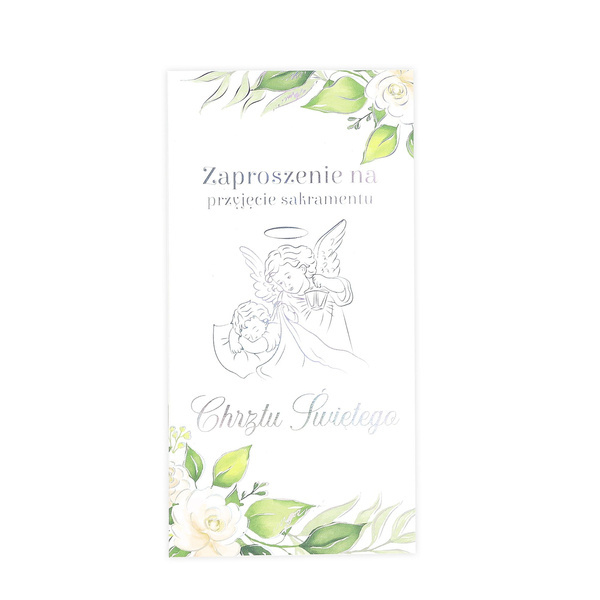 Zdobione napisem oraz nadrukiem aniołka i kwiatów.