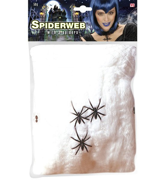 Opakowanie to aż 50g pajęczej sieci oraz trzy przerażające, czarne pająki.