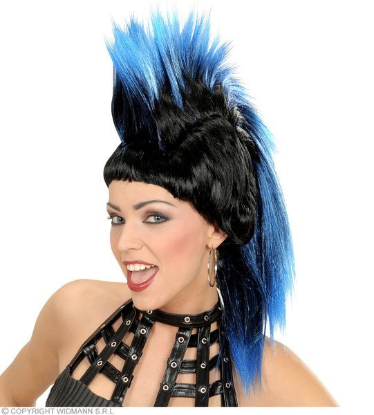 włosy od czubka głowy postawione, boki przystrzyżone.
