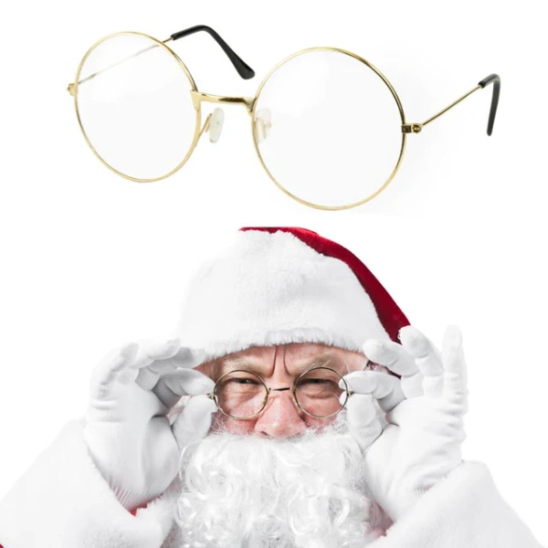 Okulary Mikołaja okrągłe w kolorze złotym.
