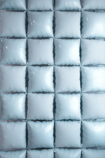 Balony w kształcie kwadratu dwustronne, w kolorze mglistym niebieskim.