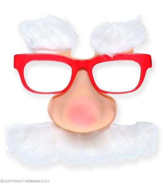 Do okularów doczepiony jest nos oraz wąsy.