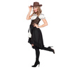 Sukienka w kolorach kremowo-czarno-brązowym.