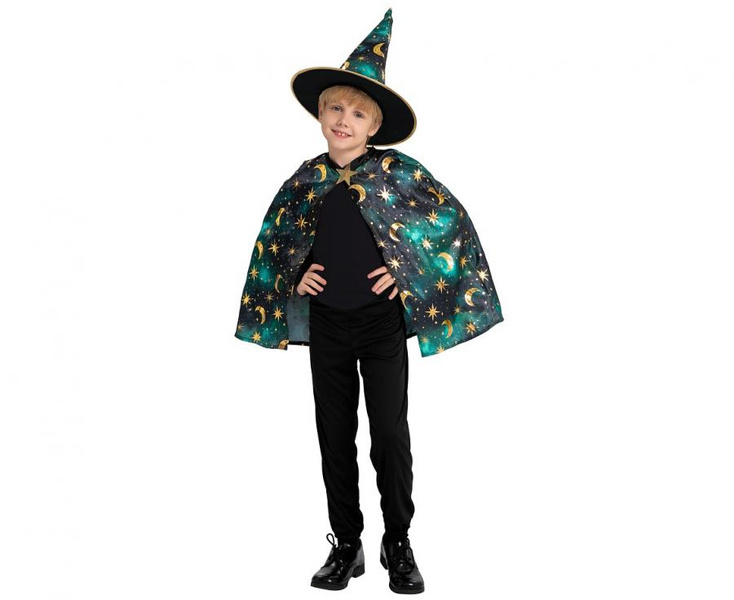 #STDZ Zestaw dla dzieci Zielony Czarodziej ( peleryna, kapelusz), rozm. 110/120 cm