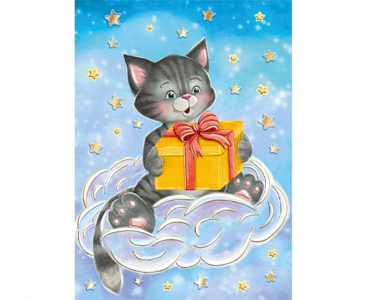 #ZK Kartka okolicznościowa B6 KOT Z PREZENTEM , 1 szt.
