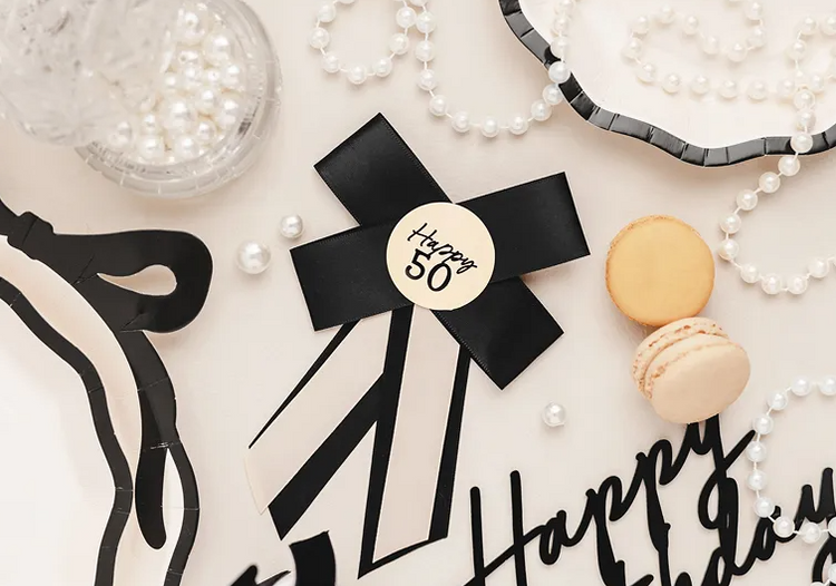 - Elegancki kotylion w kolorze kremowo-czarnym.