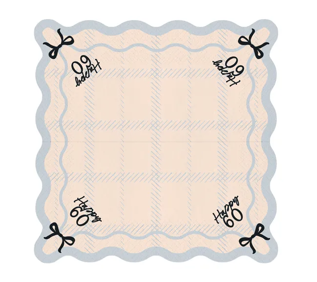 - Stylowy design – pastelowa kolorystyka z czarnymi akcentami i ozdobnym napisem "Happy 60".