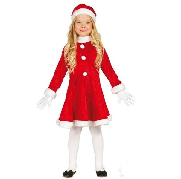 Na kołnierzu, mankietach i u dołu sukienka obszyta białym futerkiem.