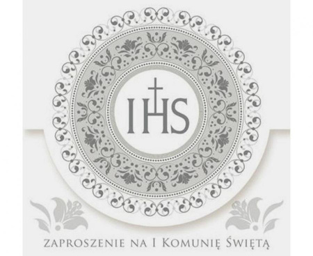 #ZK Zaproszenie kwadrat ZKW 120x120 Komunia nr 39973 Dziecięce - Chłopiec, Dziewczynka, Religia, Srebrne, 10 szt.