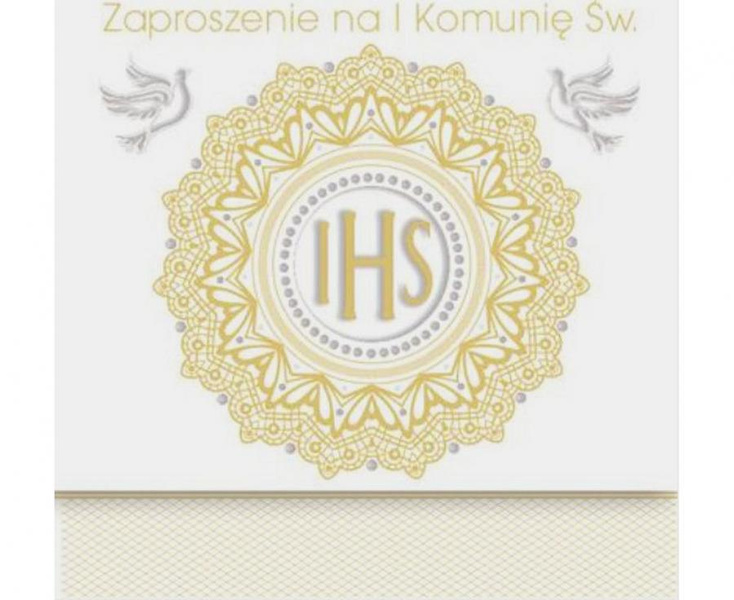 #ZK Zaproszenie kwadrat ZKW 120x120 Komunia, Dziecięce - Chłopiec, Dziewczynka, Grafika, Religia, Złote, Tłoczenie, 10 szt.