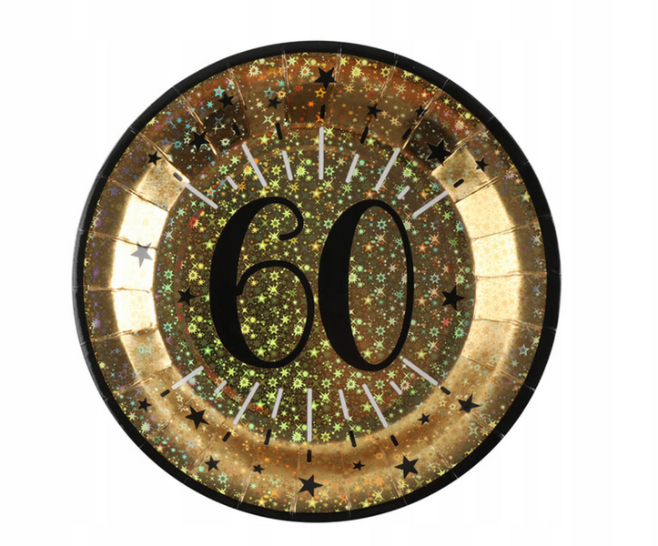 Talerzyki Papierowe 60 Urodziny Złote Holo.