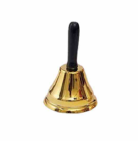 Złoty dzwonek wykonany z metalu w kolorze złotym.