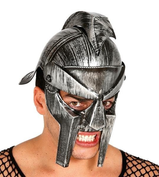 Hełm z tworzywa sztucznego w odcieniu starego srebra.
