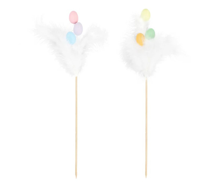 - Wymiary: wysokość bez piórek i jajeczek ok. 12 cm; wysokość całkowita z piórkiem i jajkami ok. 33 cm; jajeczka ok. 3 cm.