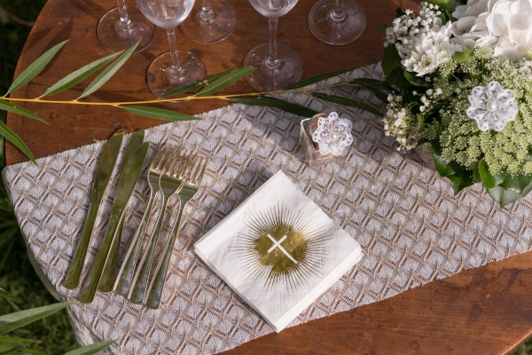 - Serwetki w kolorze białym z delikatnym, złotym nadrukiem krzyża.