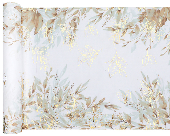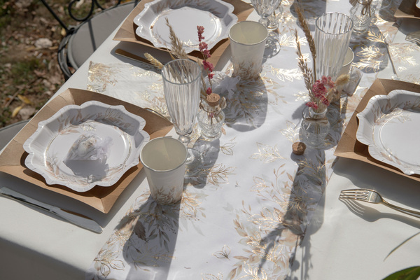 - Łatwa aranżacja – można rozwinąć go wzdłuż całego stołu lub pociąć na krótsze odcinki i zastosować jako dekoracyjne pasy pod talerze czy kompozycje kwiatowe.