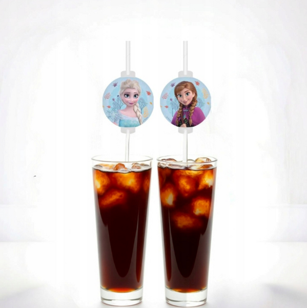 - Zestaw zawiera 4 papierowe słomki z okrągłą ozdobą przedstawiającą bohaterki filmu Frozen – Kraina Lodu.