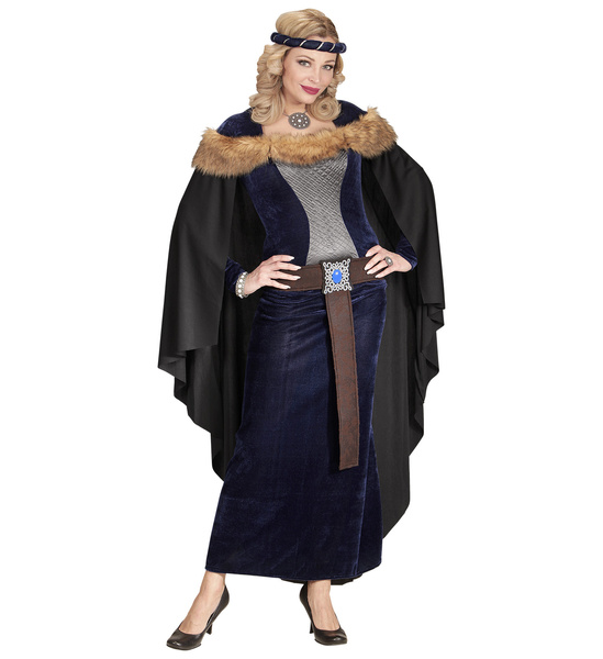 Sukienka maxi w kolorze granatowym, z wszytą peleryną
