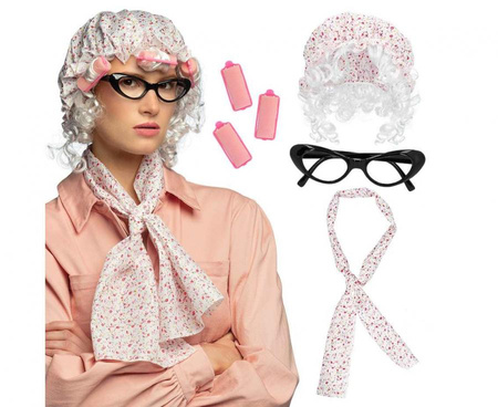 ZESTAW BABCI, BABCIA Z CZERWONEGO KAPTURKA Zestaw zawiera: czepek do spania, szalik, okulary, wałki Kolor: biały, różowy Ilość sztuk: 1 szt. (zestaw) Producent: Boland