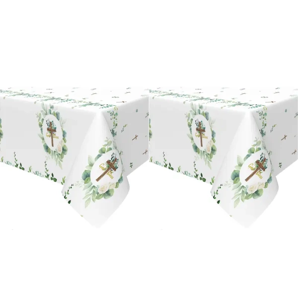 Produkt w kolorze białym zdobiony nadrukiem liści eukaliptusa, krzyżami oraz napisem "God Blees".