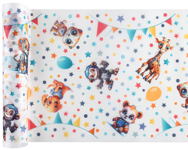 - Kolor: biały z kolorowymi gwiazdkami i kropkami, z wizerunkami zwierząt.