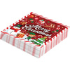 Nadruk: bałwanek, wesołe elfy, choinka sanie Mikołaja, obwódka serwetki nawiązuje do laski cukrowej.