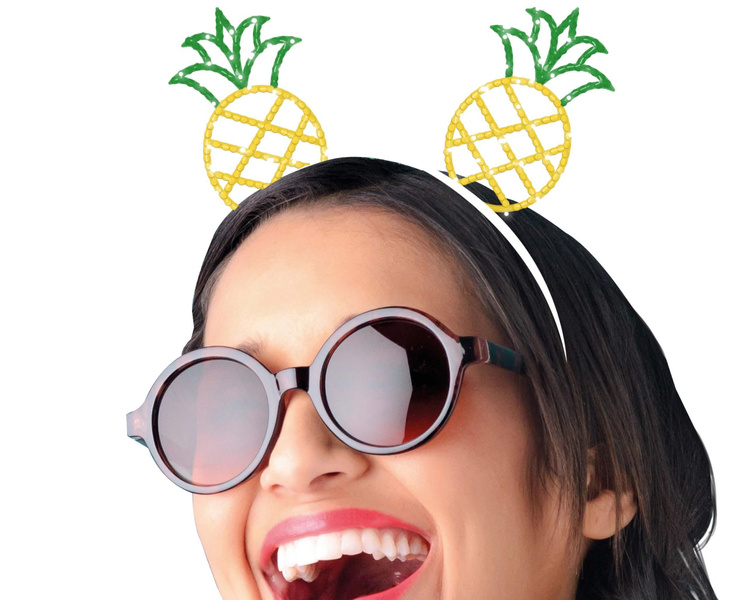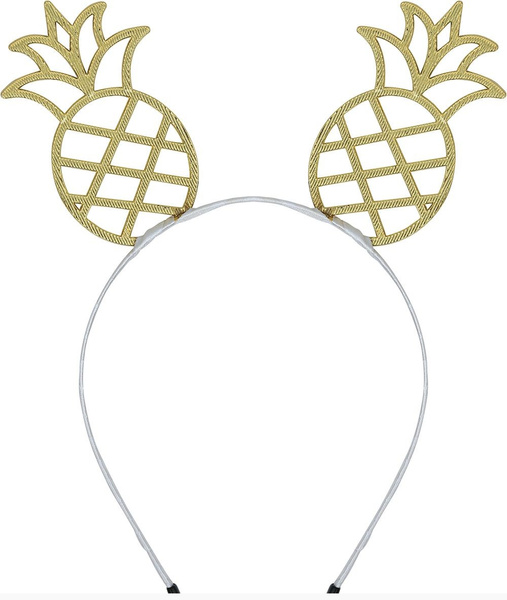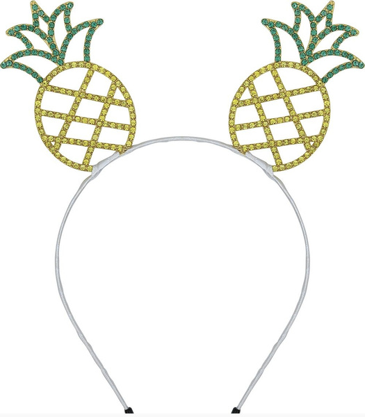 Biała opaska z dwoma ananasami - zdobione kolorowymi kamieniami.