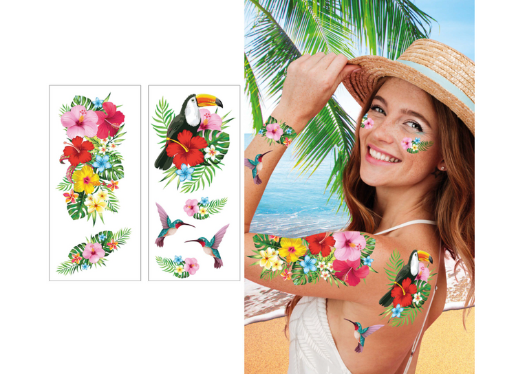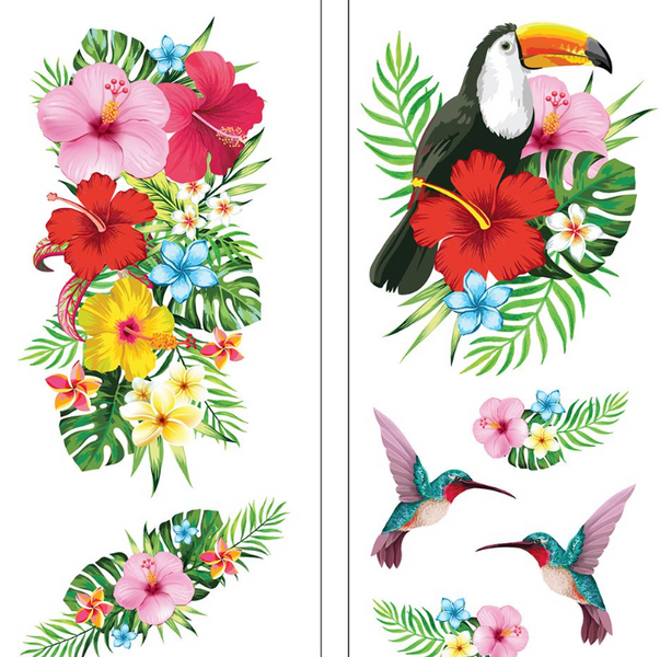- Arkusz o wymiarach 14 x 30 cm z różnorodnymi, tropikalnymi wzorami.