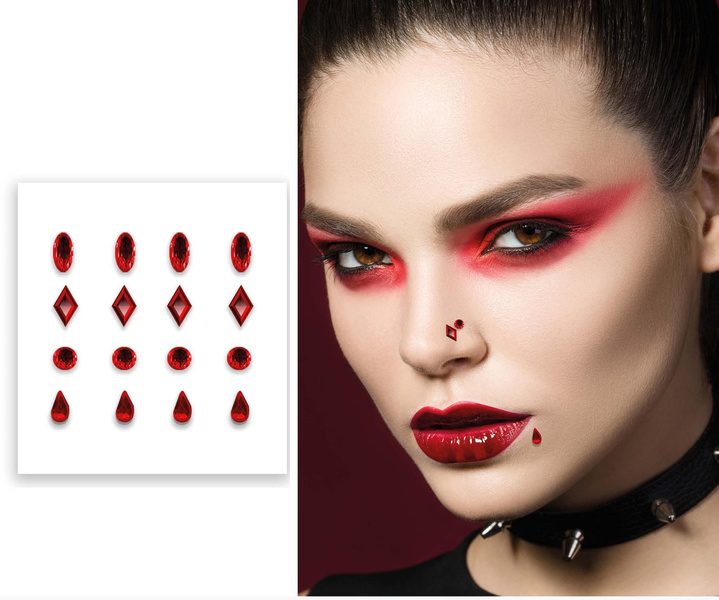 Zestaw naklejek cyrkonii do przyklejenia na twarz.