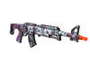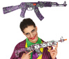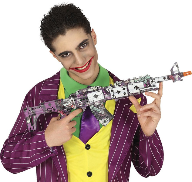 Karabin z nadrukiem morderczego klauna i kart do gry.