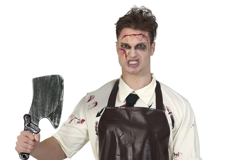 - Świetny dodatek do różnych kostiumów: morderca z horroru, postać z filmu grozy czy klasyczny rzeźnik.
