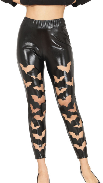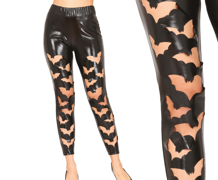 Czarne leginsy z wycięciami w kształcie nietoperzy.