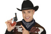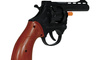 Plastikowy rewolwer w kolorze czarno-brązowym.