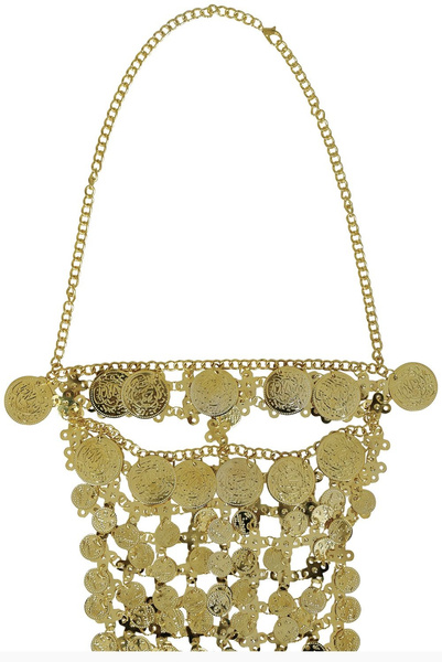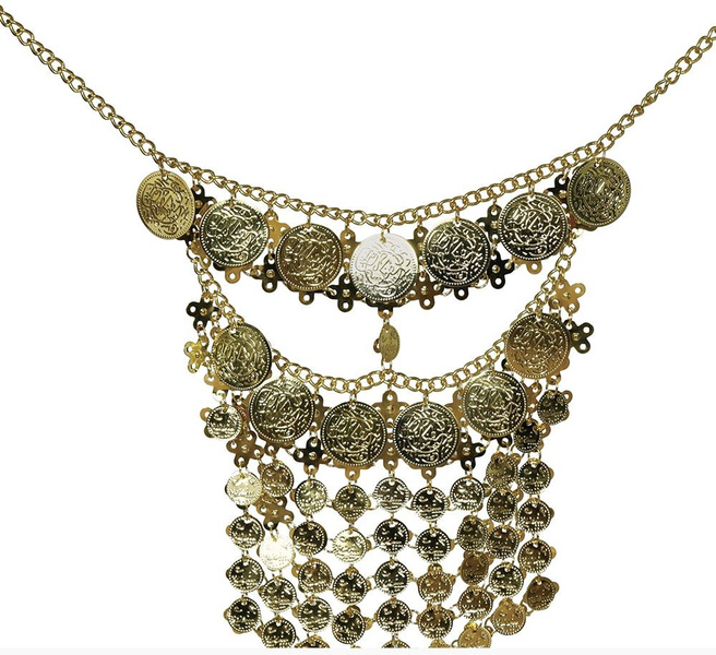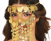 Naszyjnik do założenia na twarz wykonany z imitacji złotych monet.
