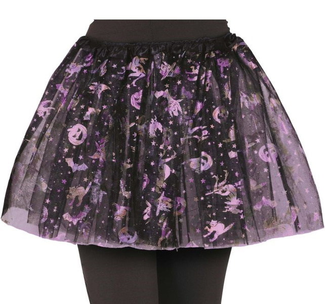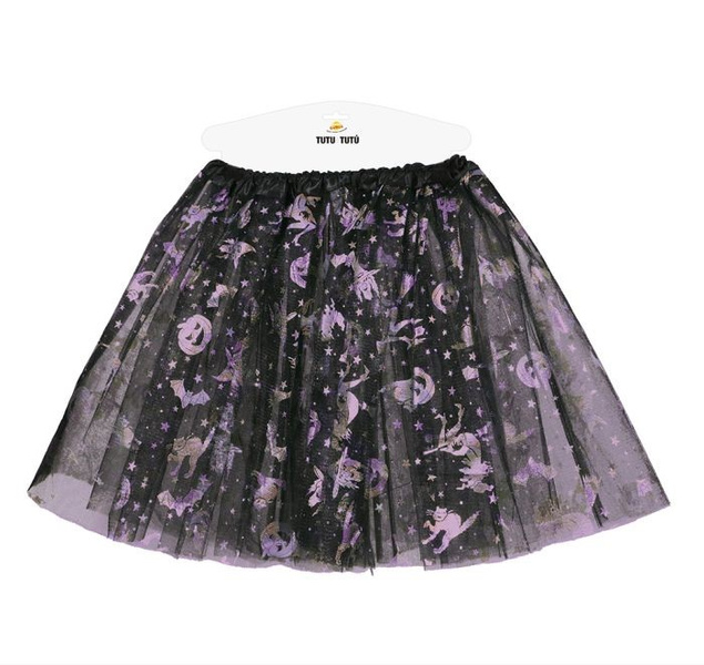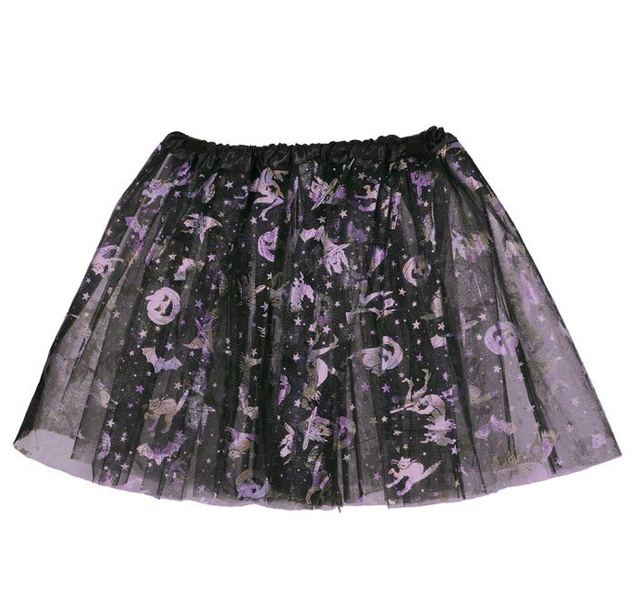 Nadruk: fioletowy nadruk dyni, czarownic, kotów, gwiazdek.