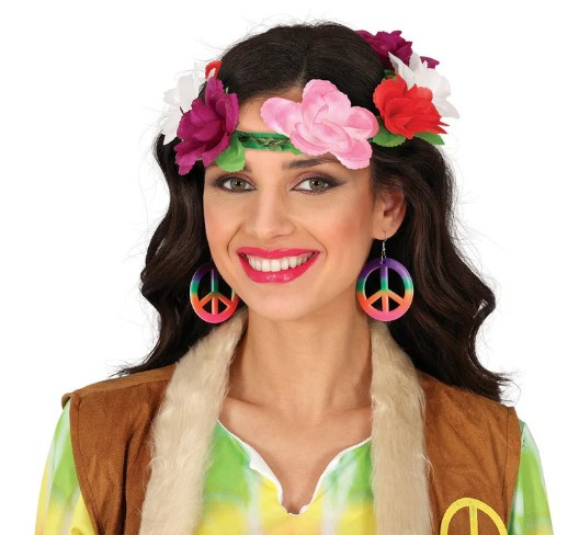 Wianek ze sztucznych kwiatów wielokolorowych.
